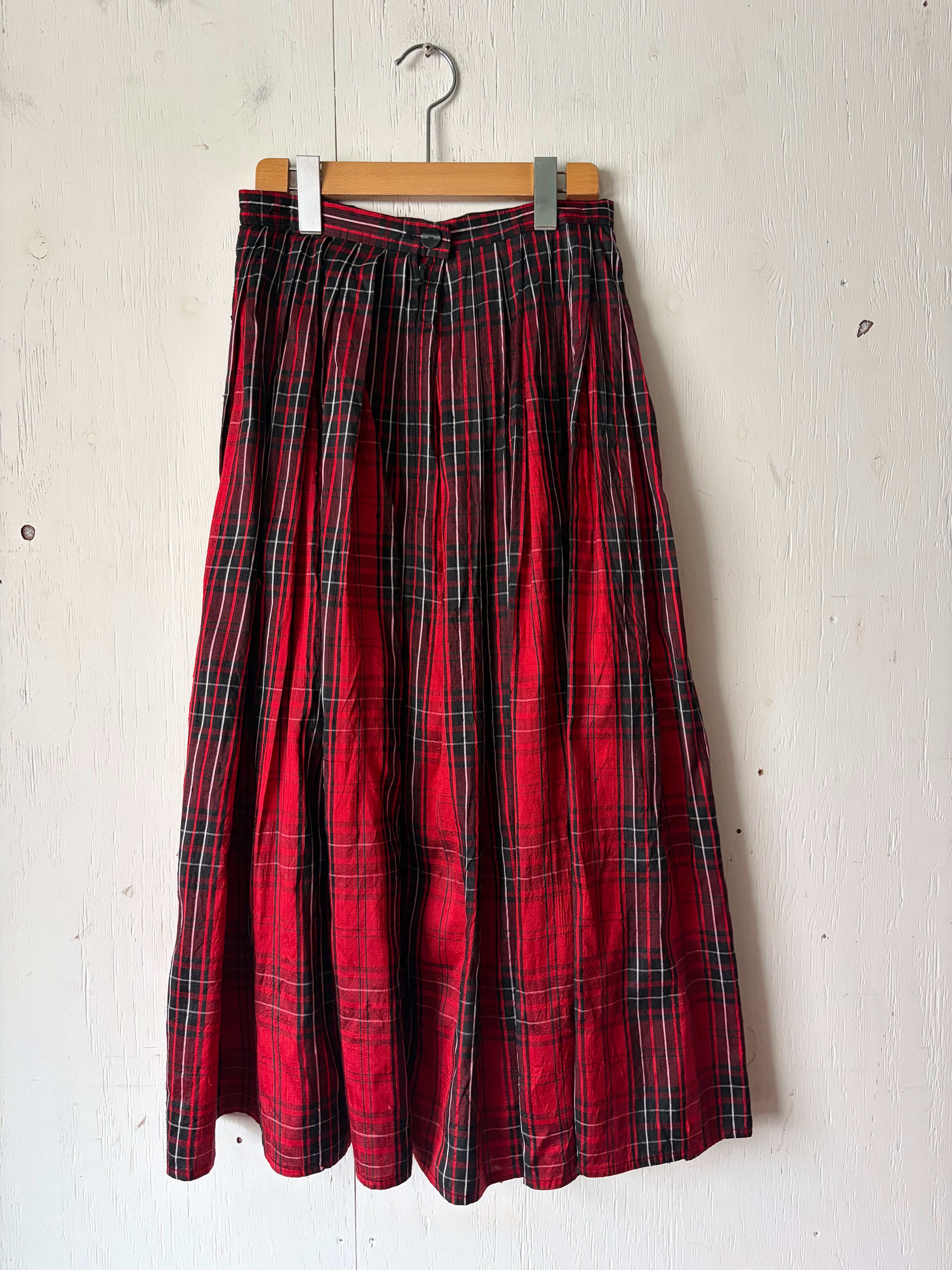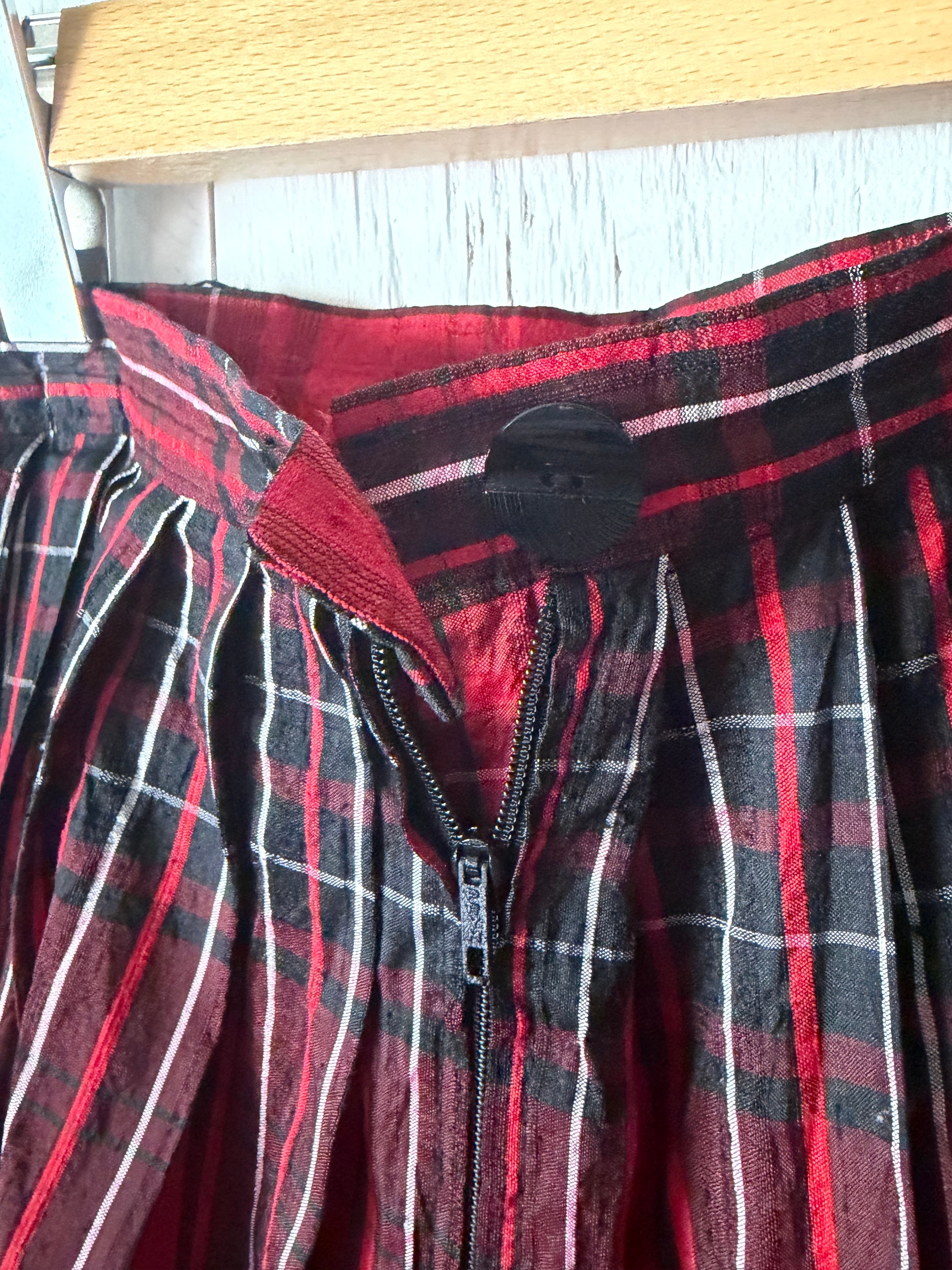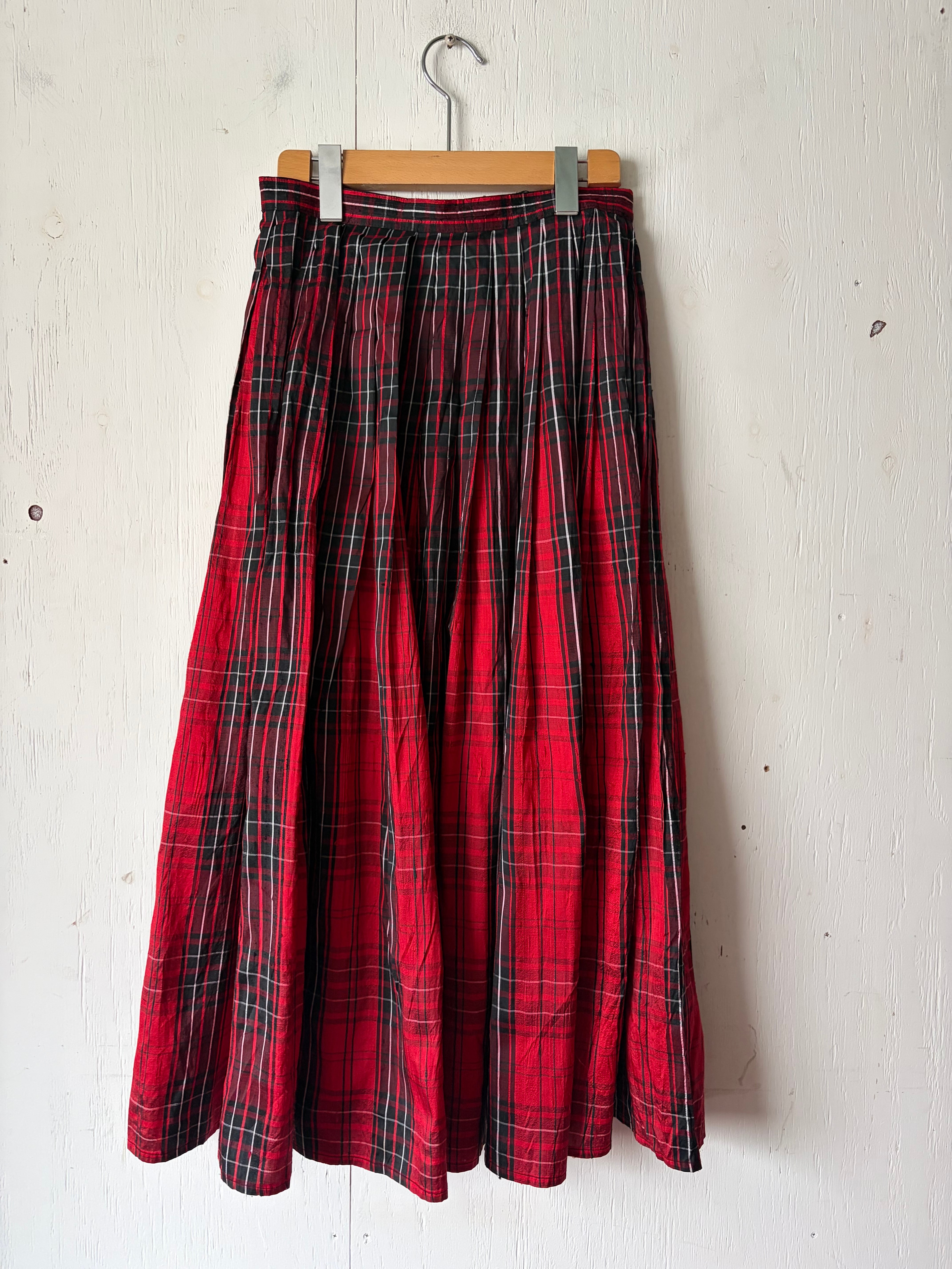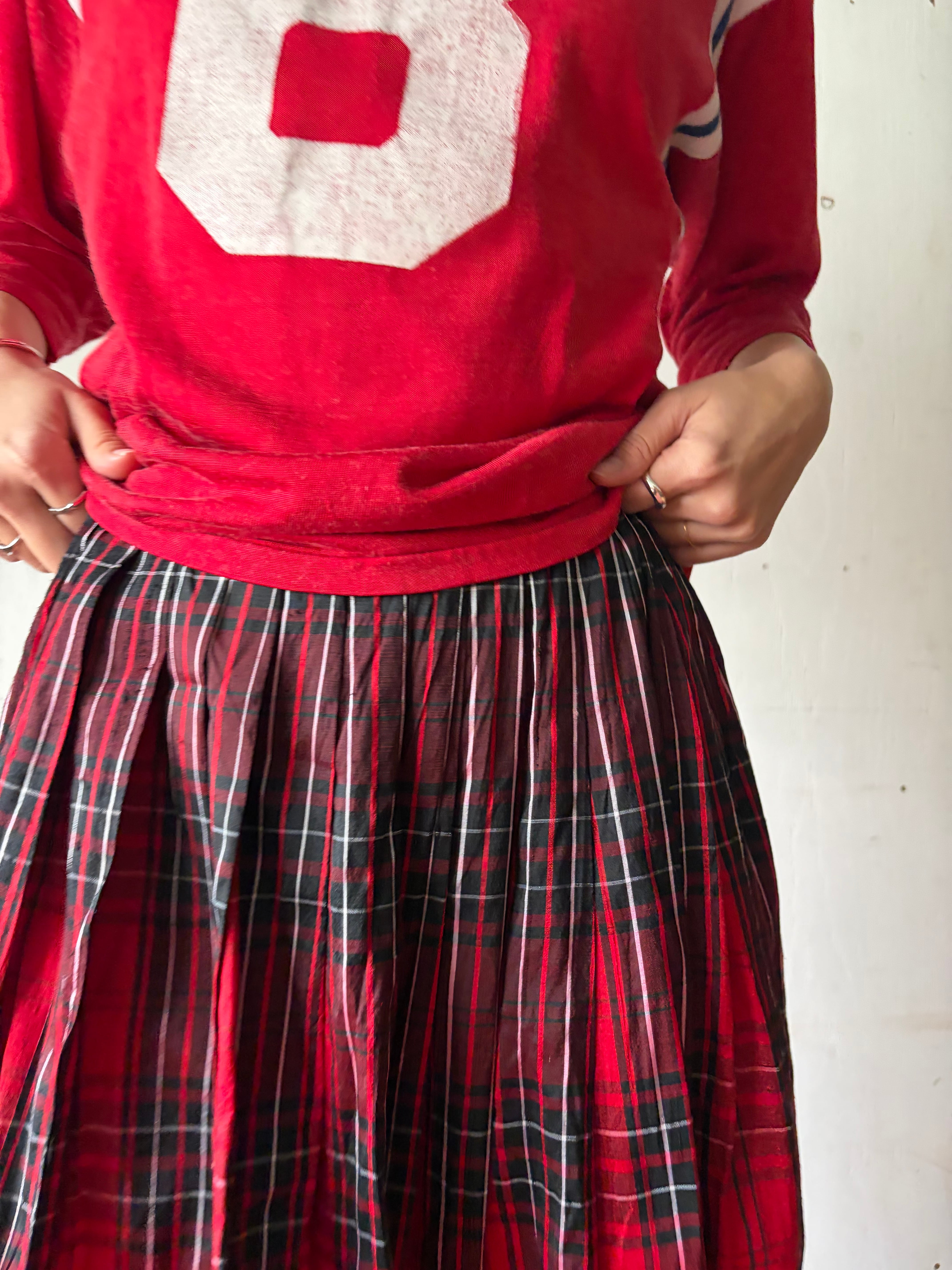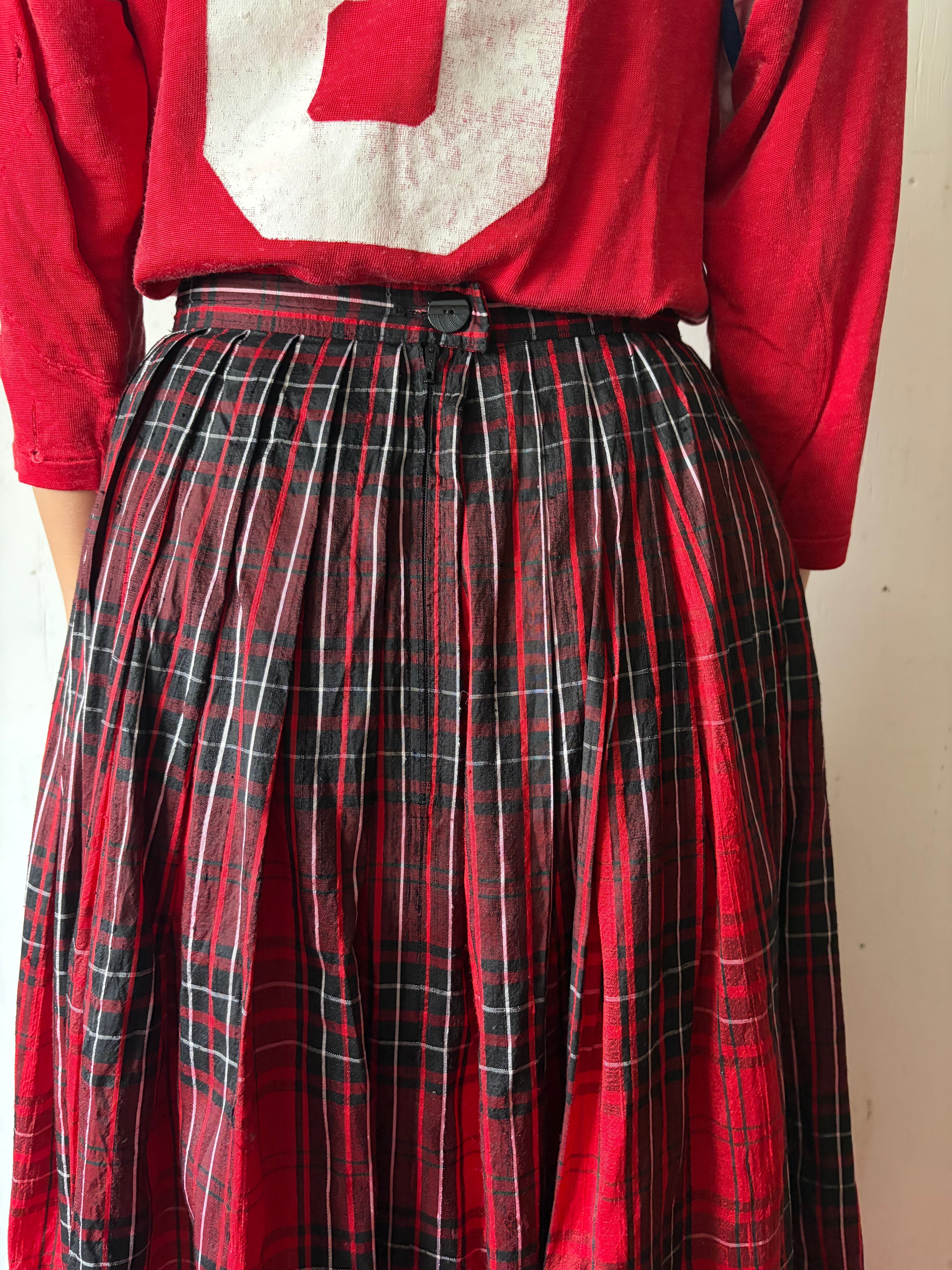 1970’s Thai silk red plaid skirt