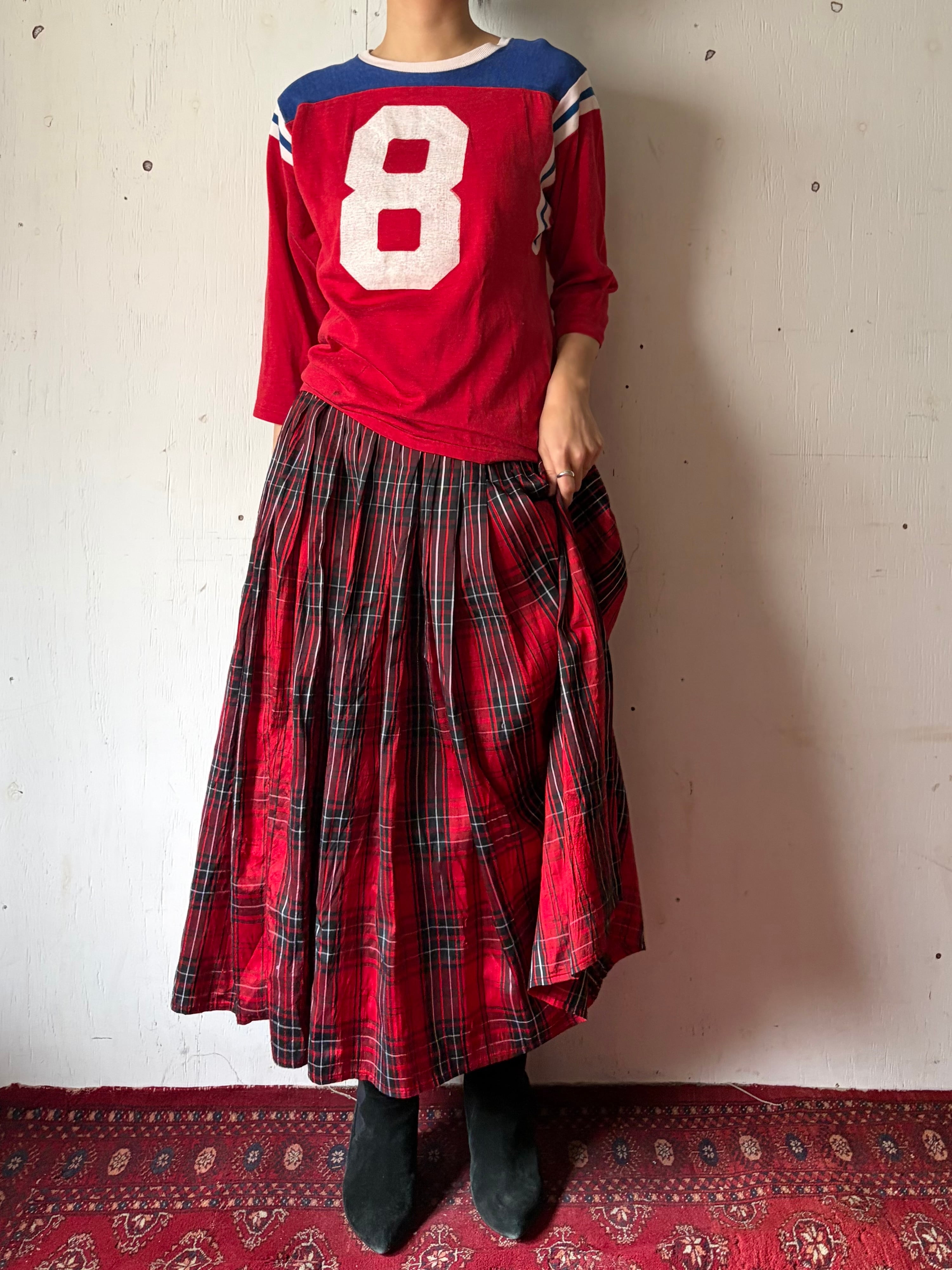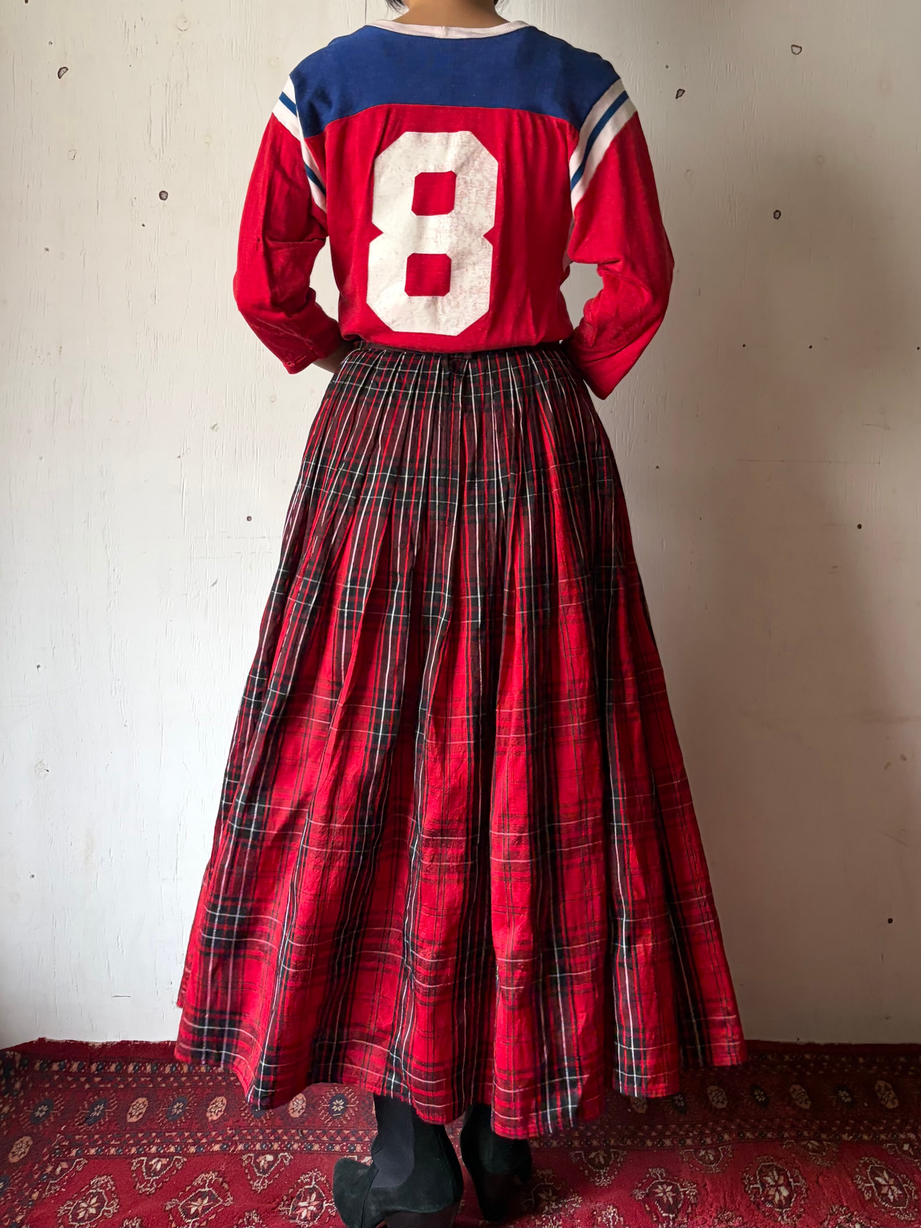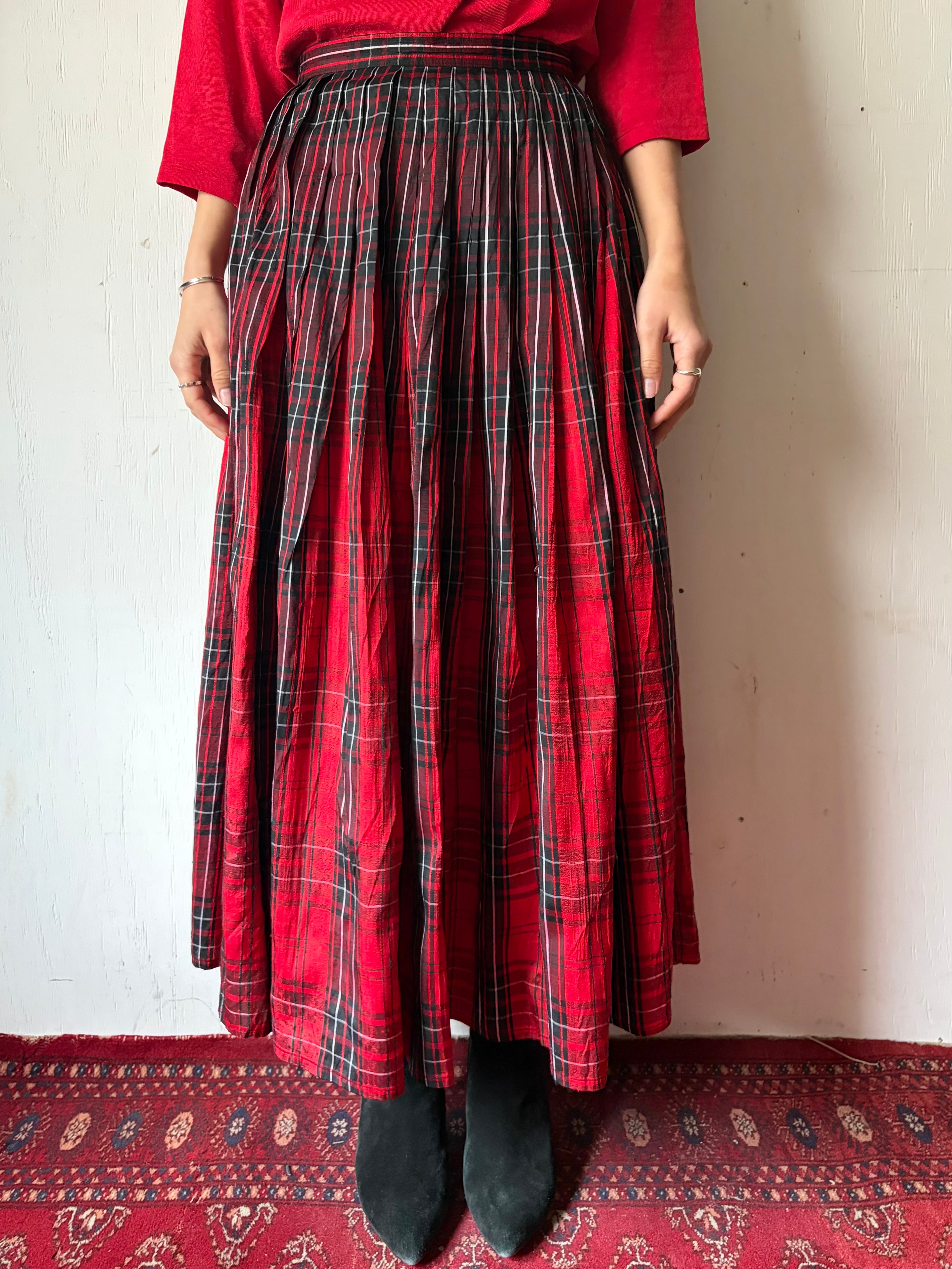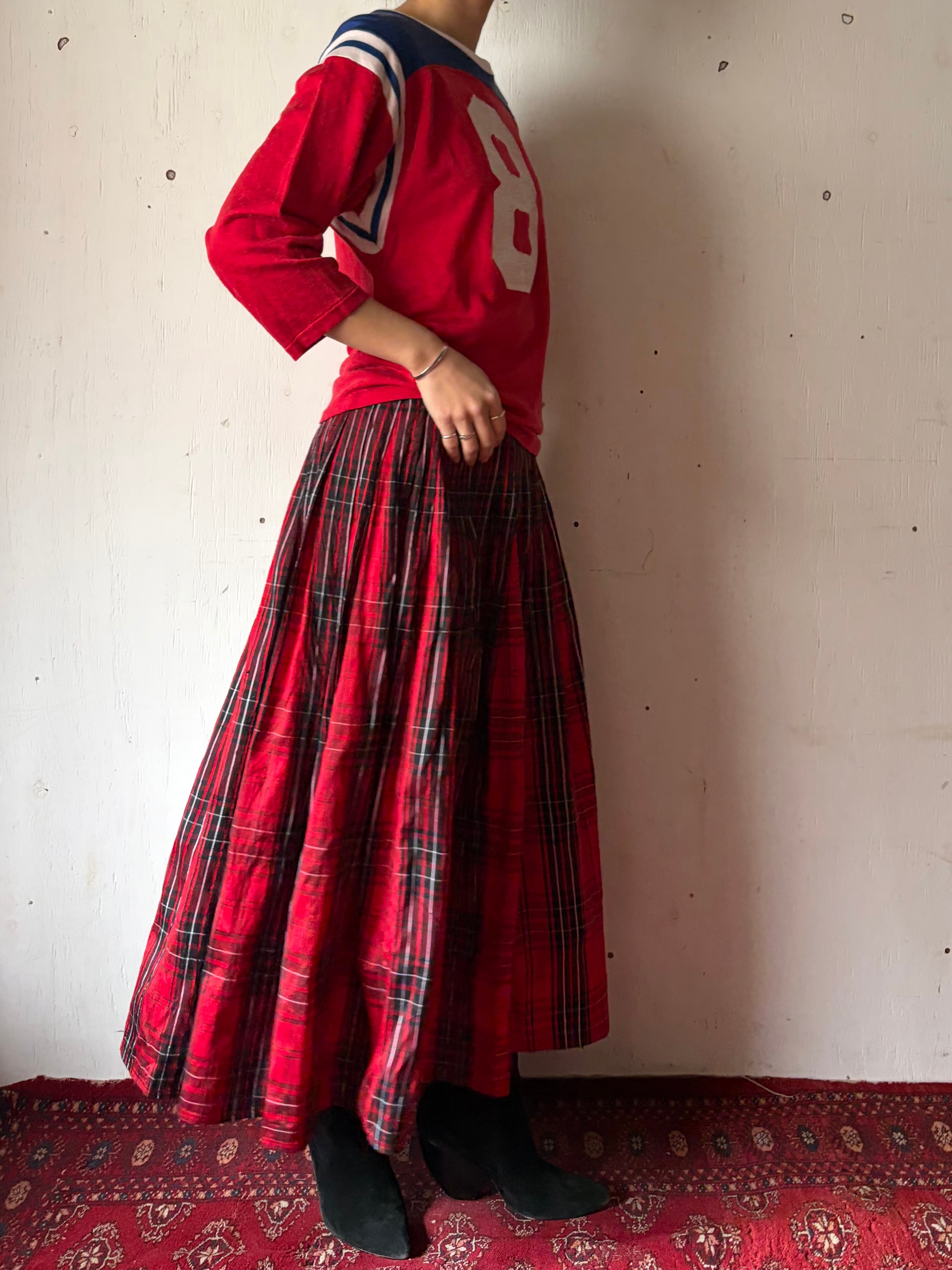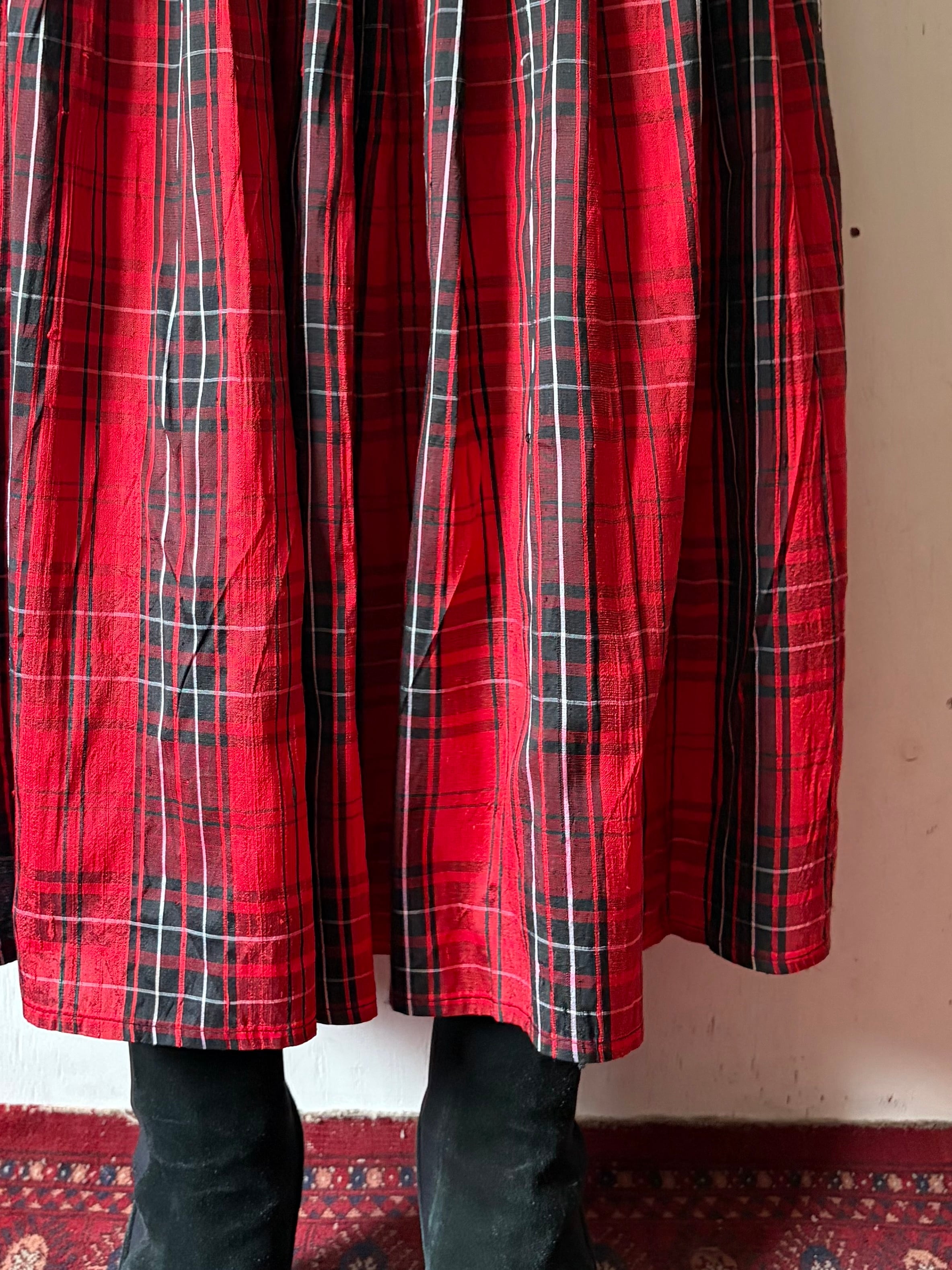 1970’s Thai silk red plaid skirt