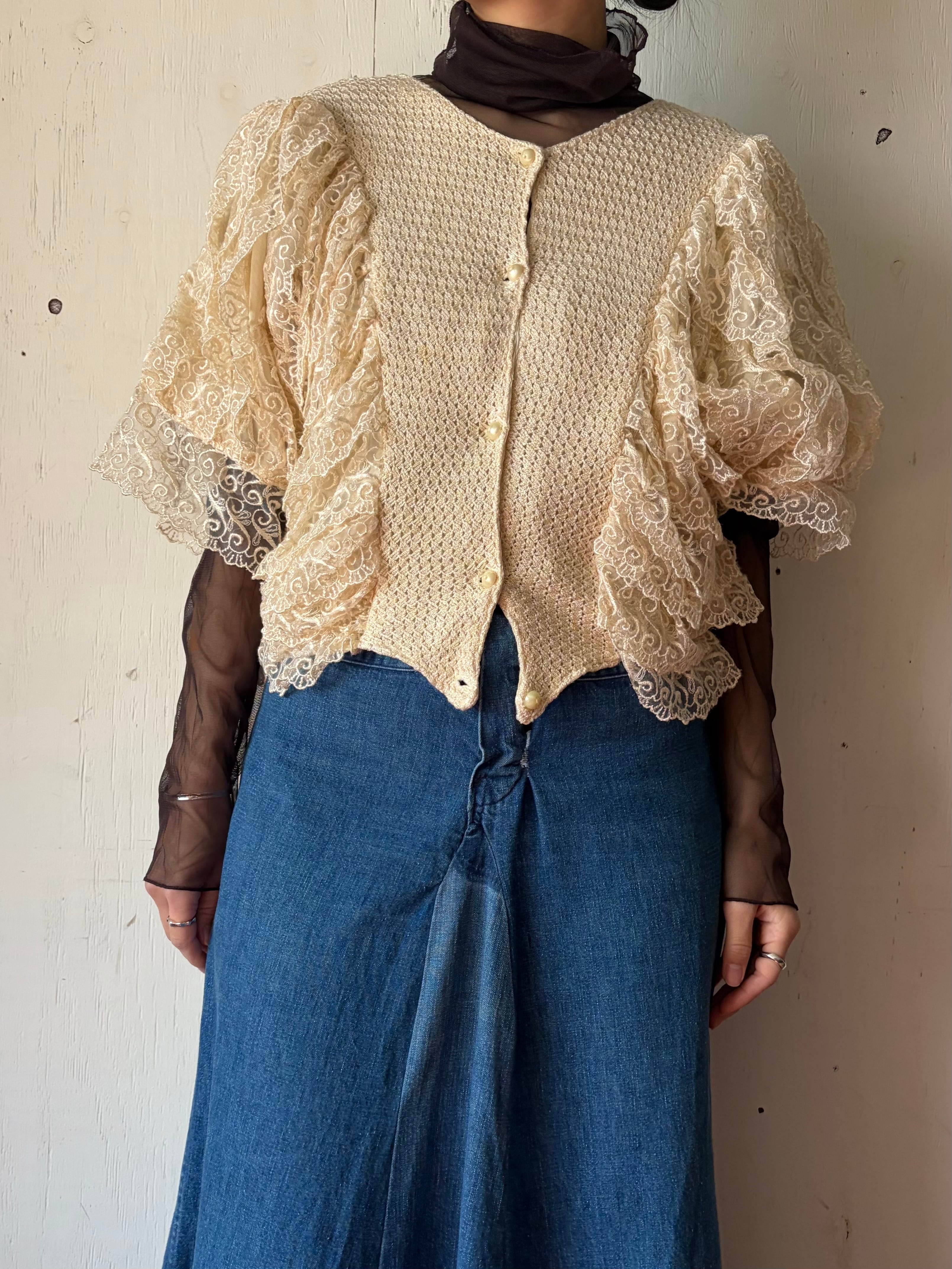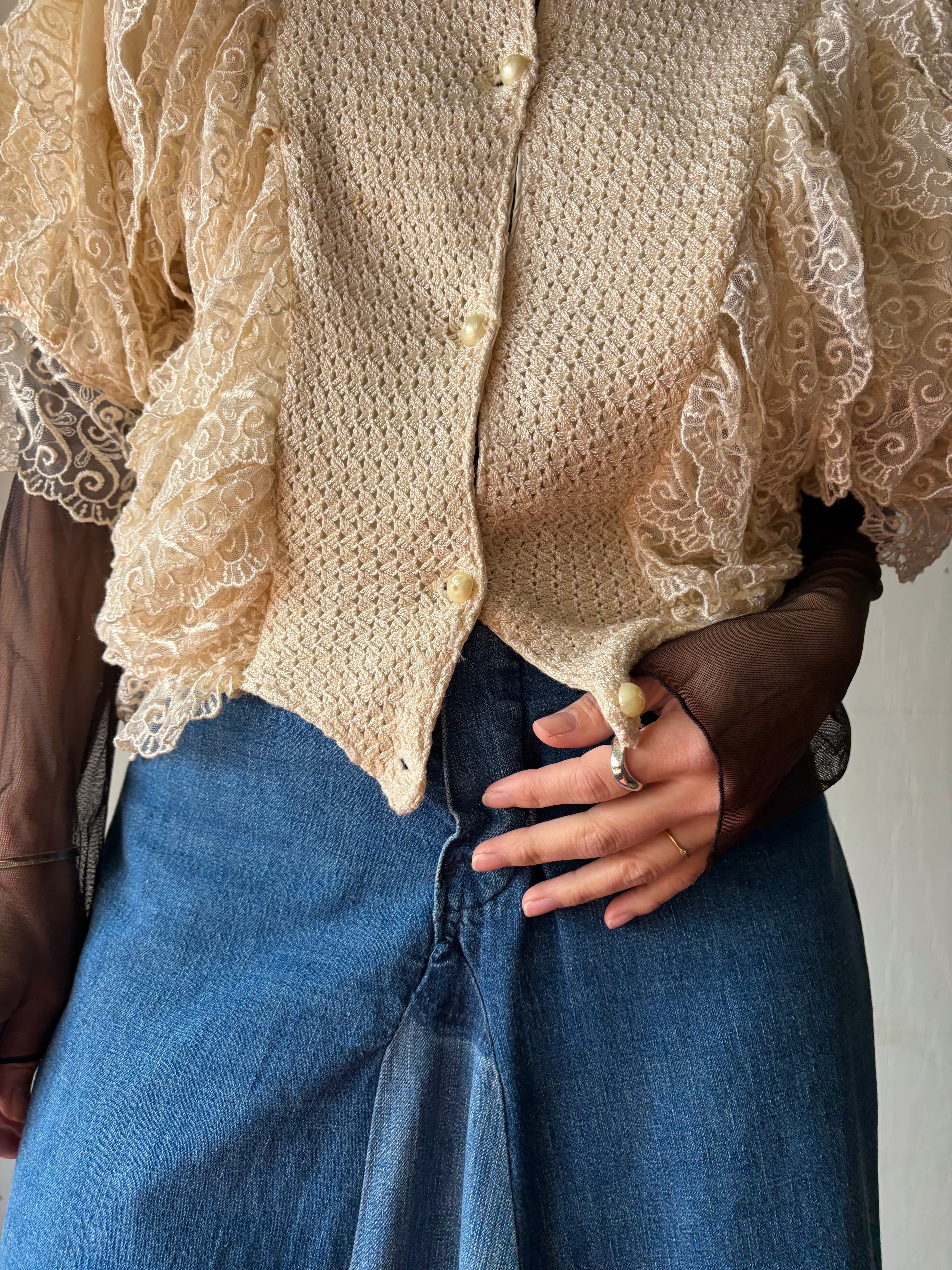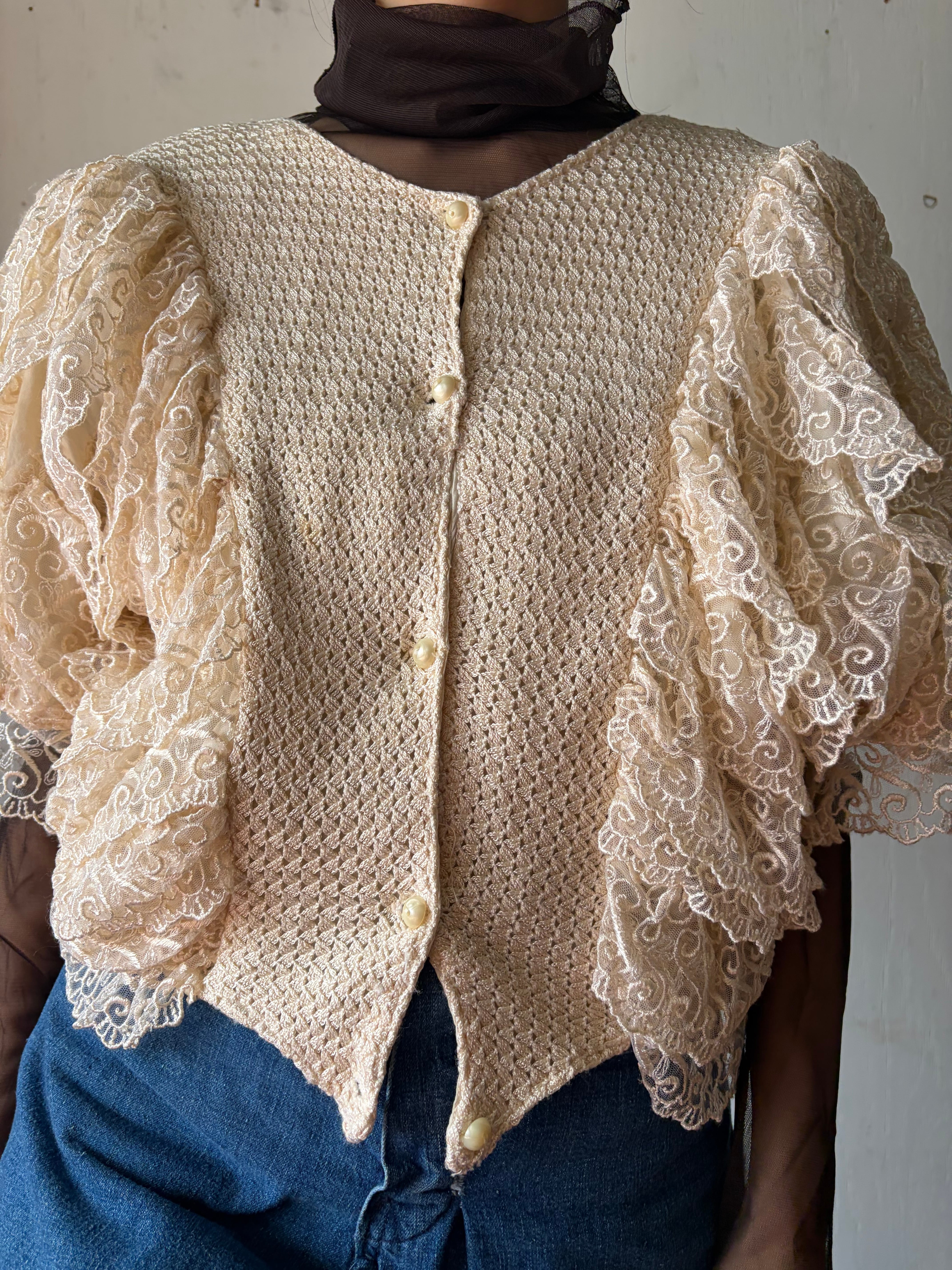 1980’s White volume lace top
