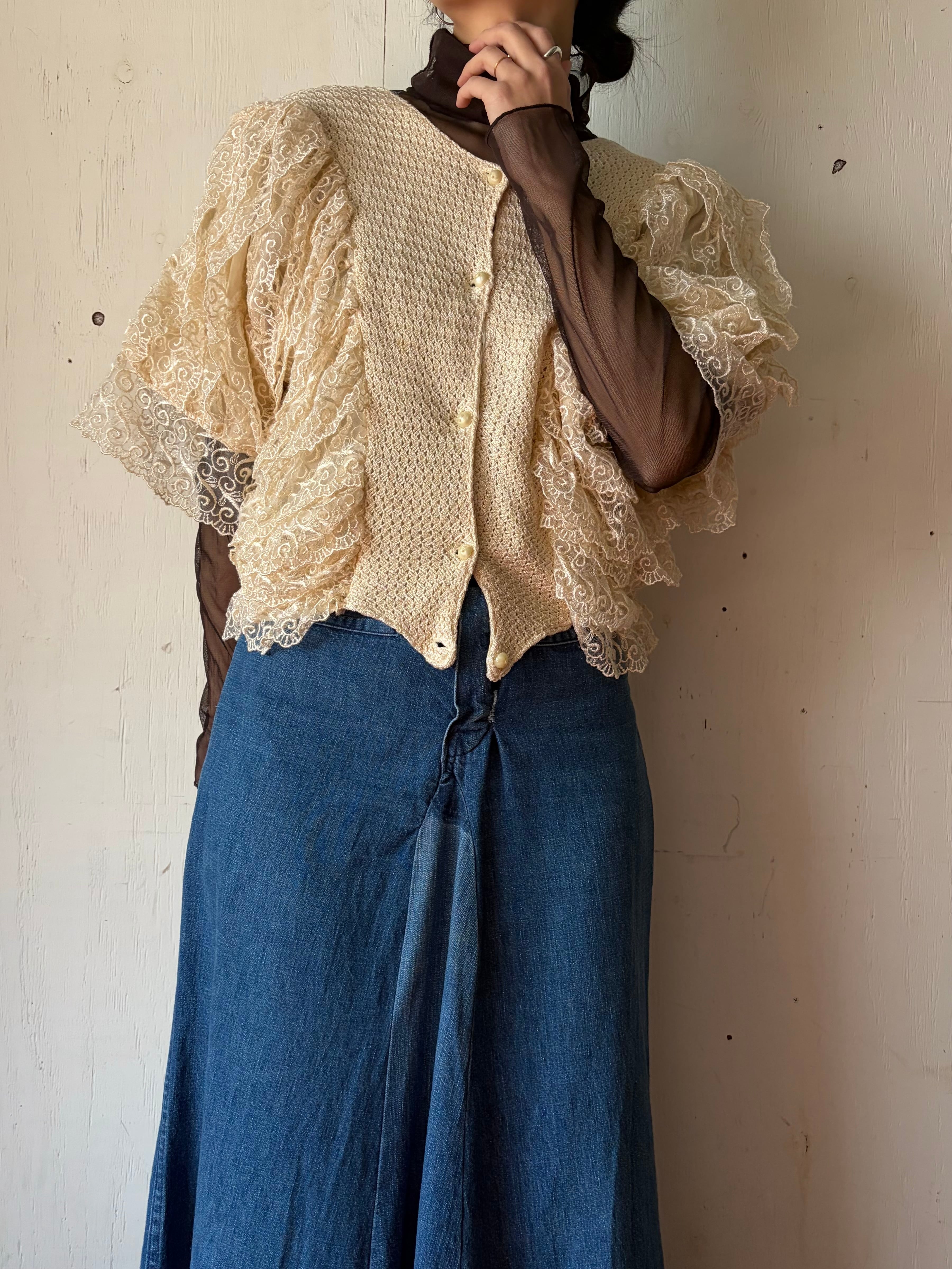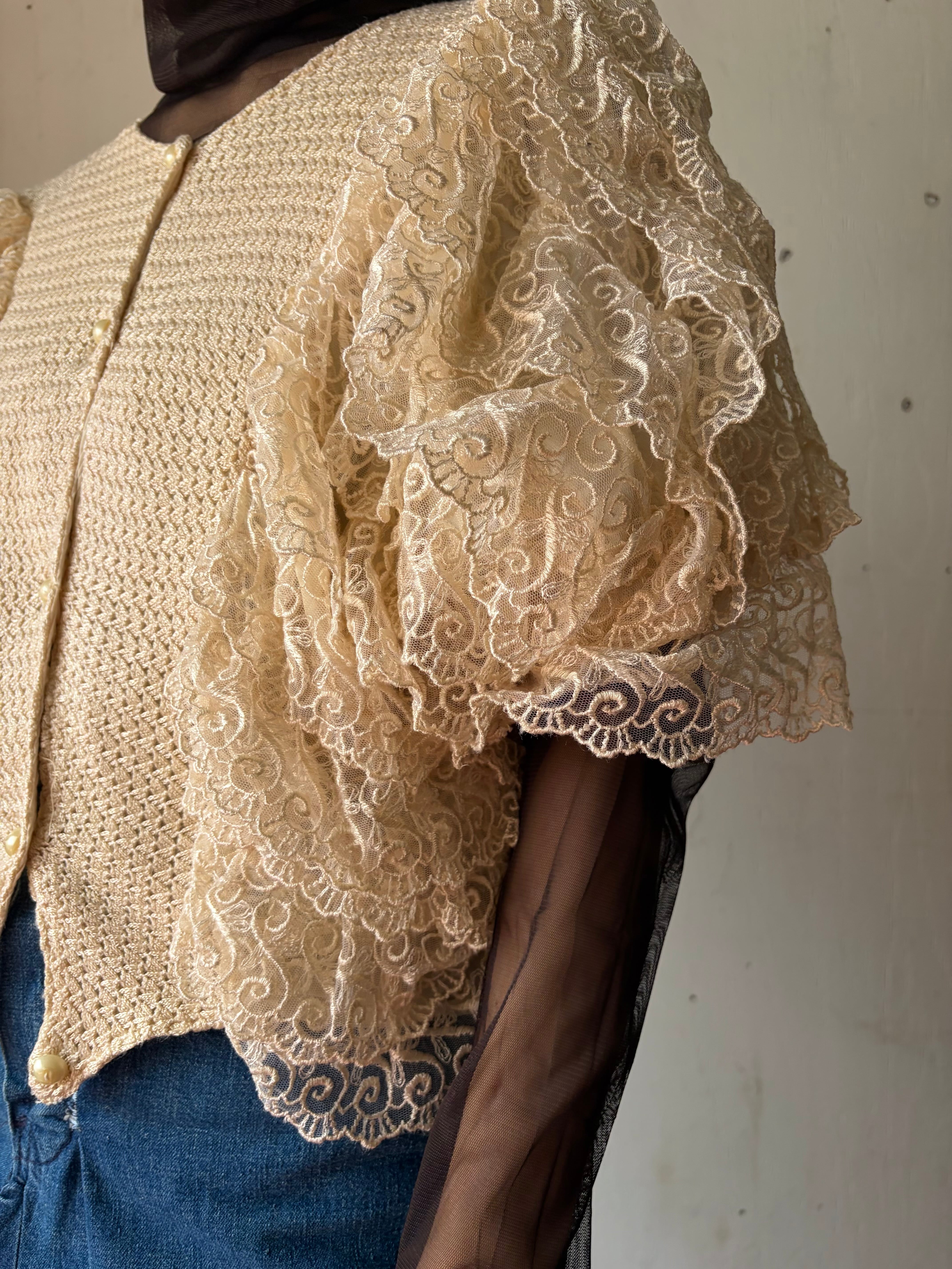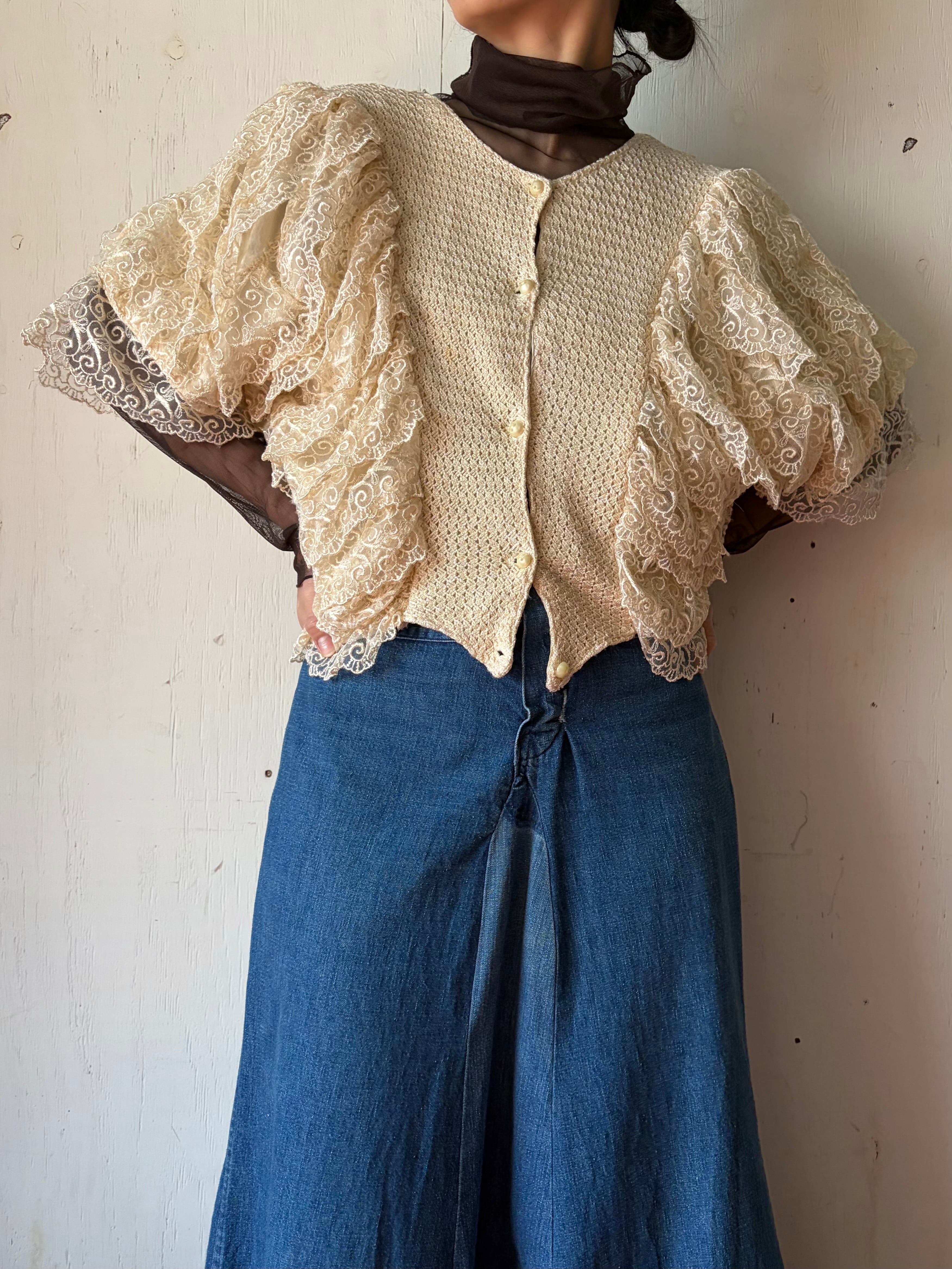 1980’s White volume lace top